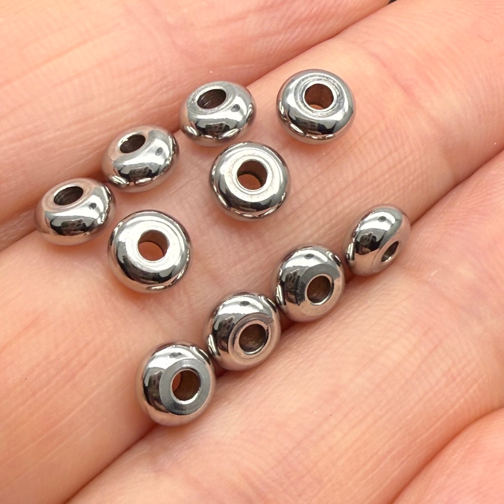 Бусина, разделитель, бублик, нержавеющая сталь, размер 6х3 мм, цена за 10 шт.
