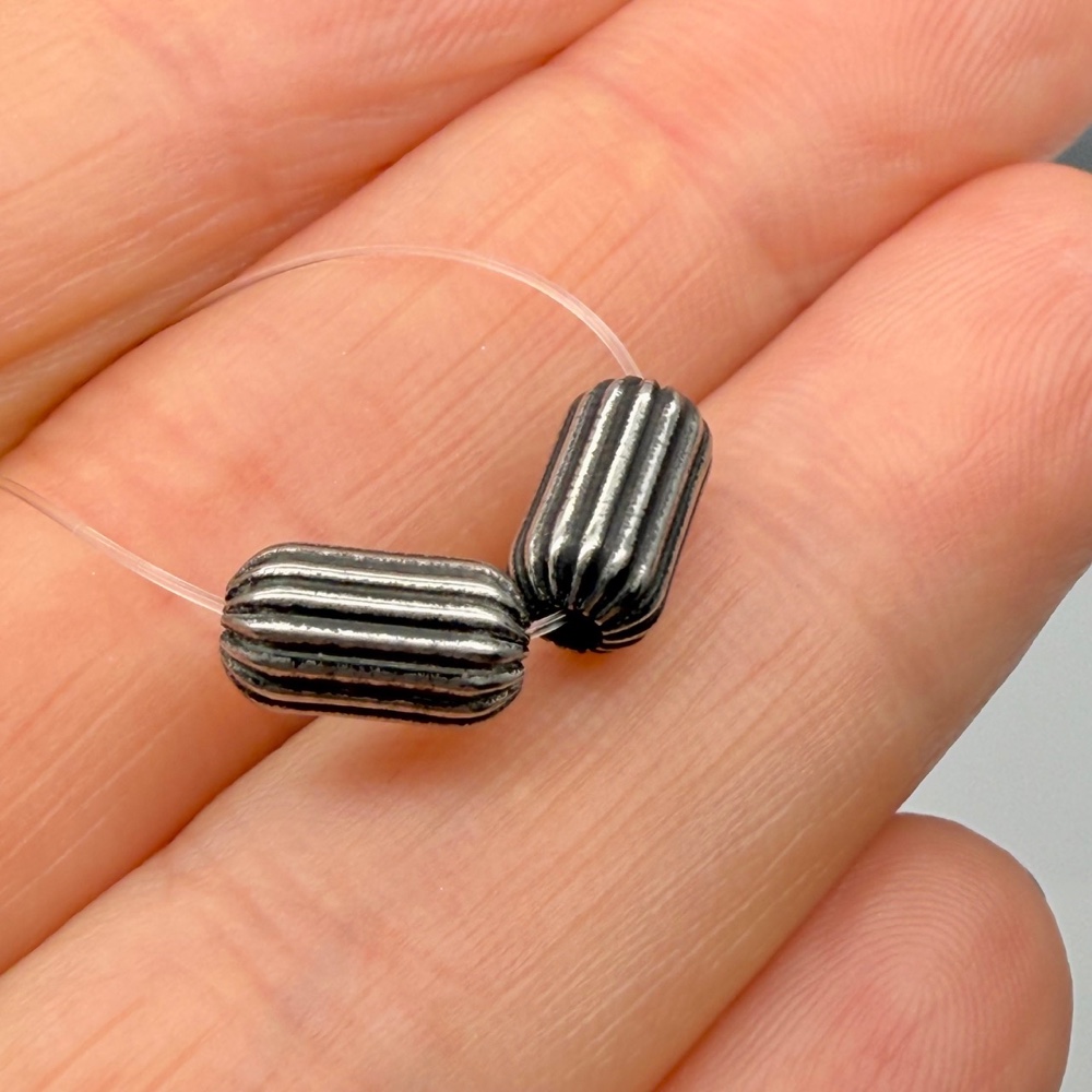 В наличии Код товара: 17509 Каменные бусины, Гематит синтетический, темное серебро, квадрат, размер 2х1 мм, нить 38 см