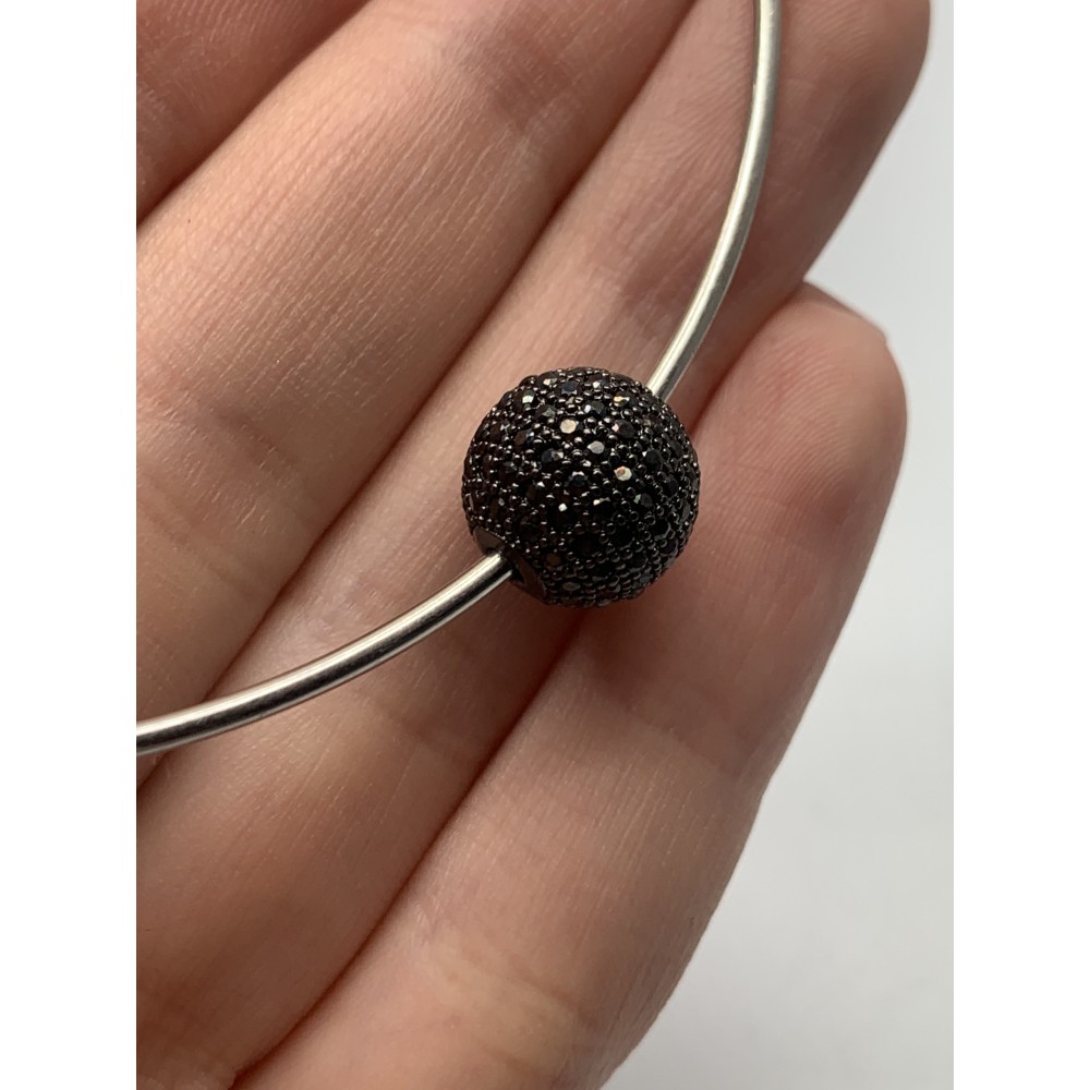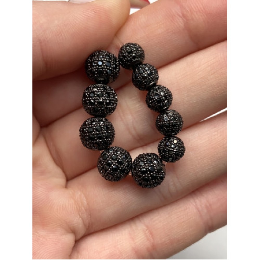 Бусина со стразами (цирконами), латунь, цвет воронёная сталь, 12 мм