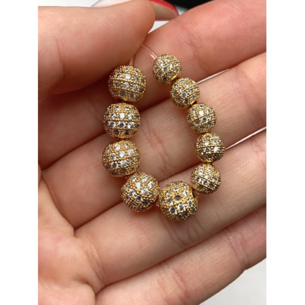 Бусина со стразами (цирконами), латунь, цвет золото, 10 мм