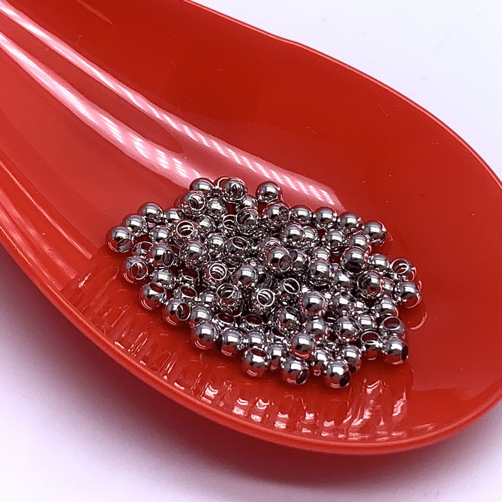 Теги: Бусина гладкая, разделитель, латунь, цвет родий(серебро), шарик 3 мм, цена за упаковку (50 шт), 17062, Бусины