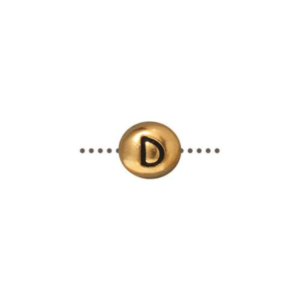 • Бусина металлическая, TierraCast, двусторонняя с буквой английского алфавита D, позолоченная с чернением, 6мм