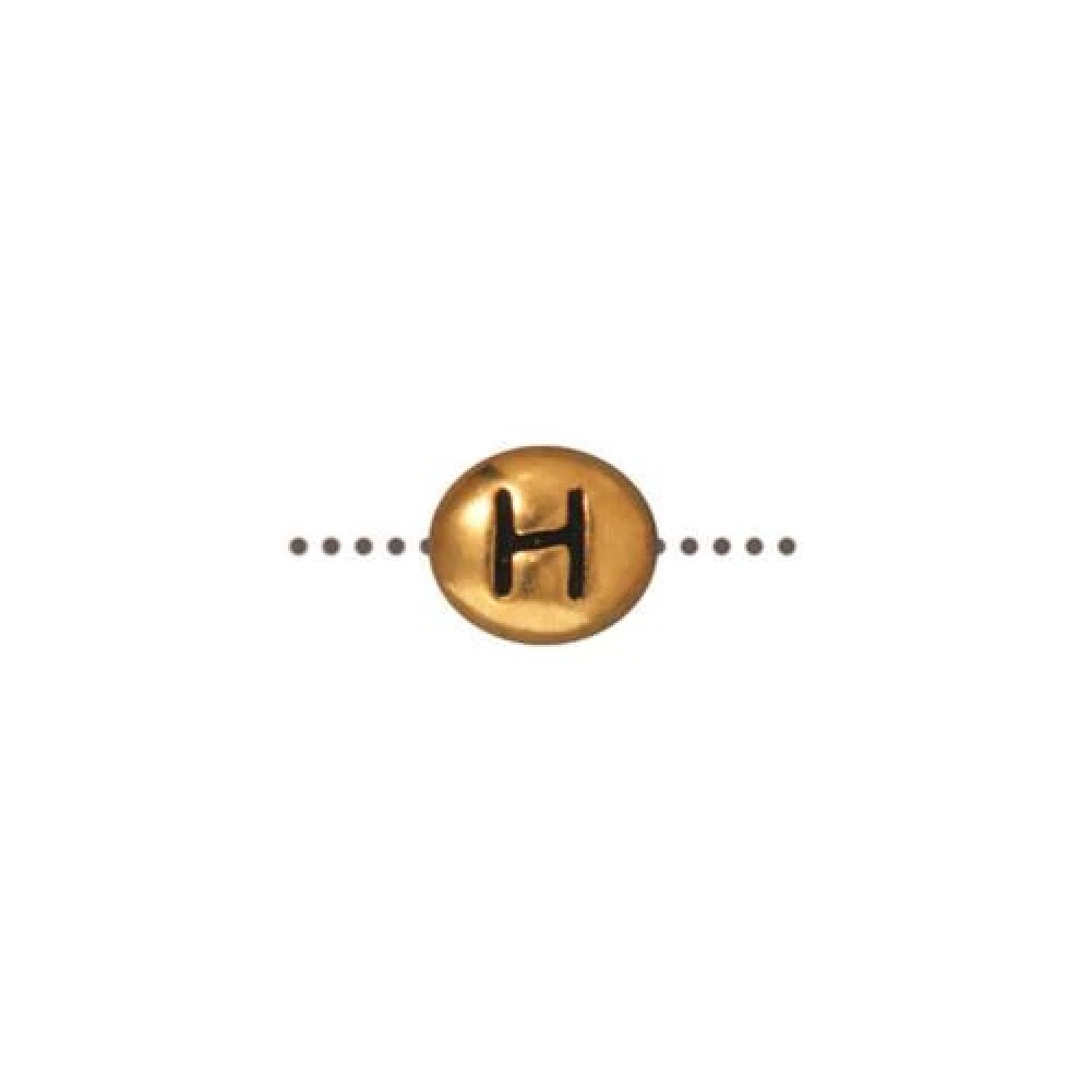 • Бусина металлическая, TierraCast, двусторонняя с буквой английского алфавита H, позолоченная с чернением, 6мм