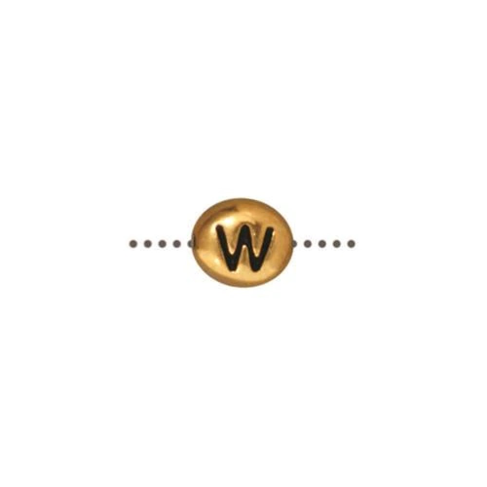 • Бусина металлическая, TierraCast, двусторонняя с буквой английского алфавита W, позолоченная с чернением, 6мм
