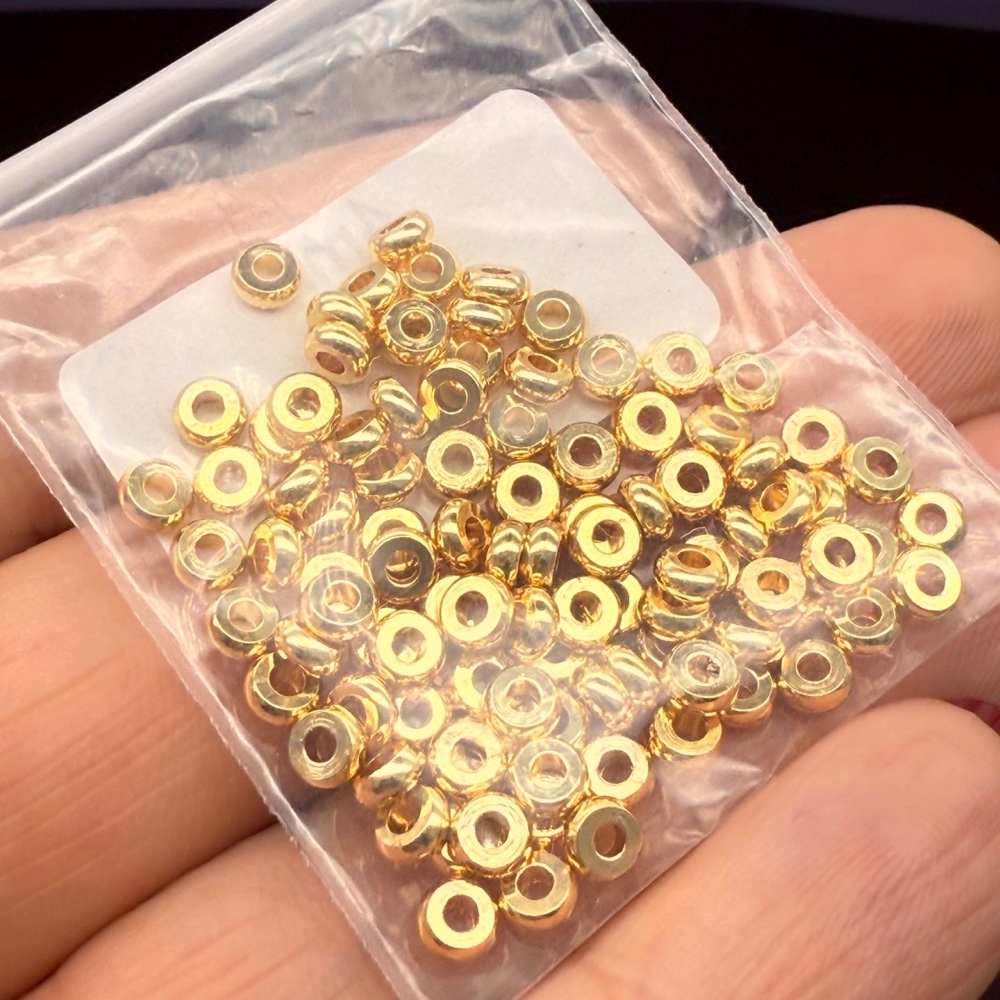 • Бусина, разделитель, латунь, цвет золото, шайба 4х1,5 мм, цена за упаковку (20 шт)