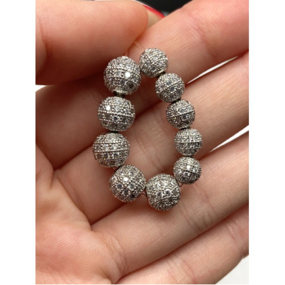 Бусина со стразами (цирконами), латунь, цвет родий (серебро), 10 мм