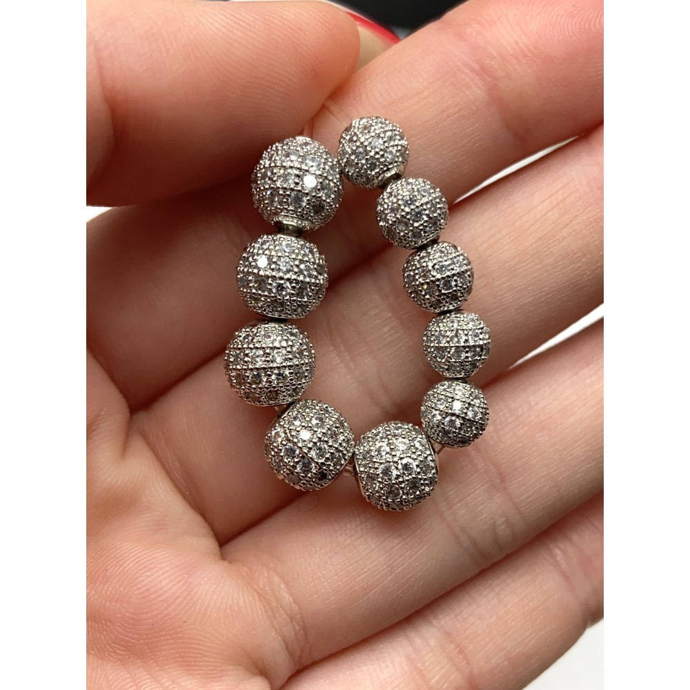 Бусина со стразами(цирконами), латунь, цвет родий(серебро), 6 мм