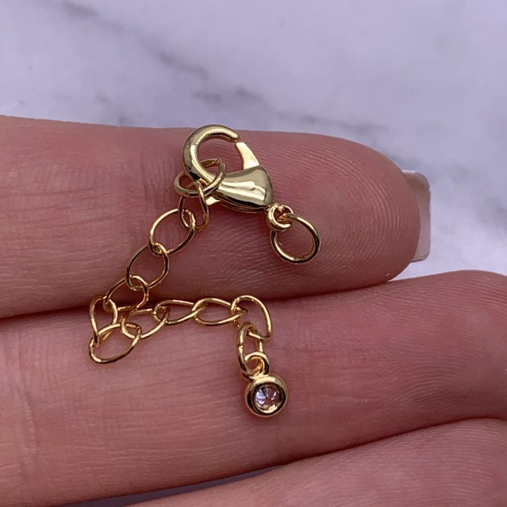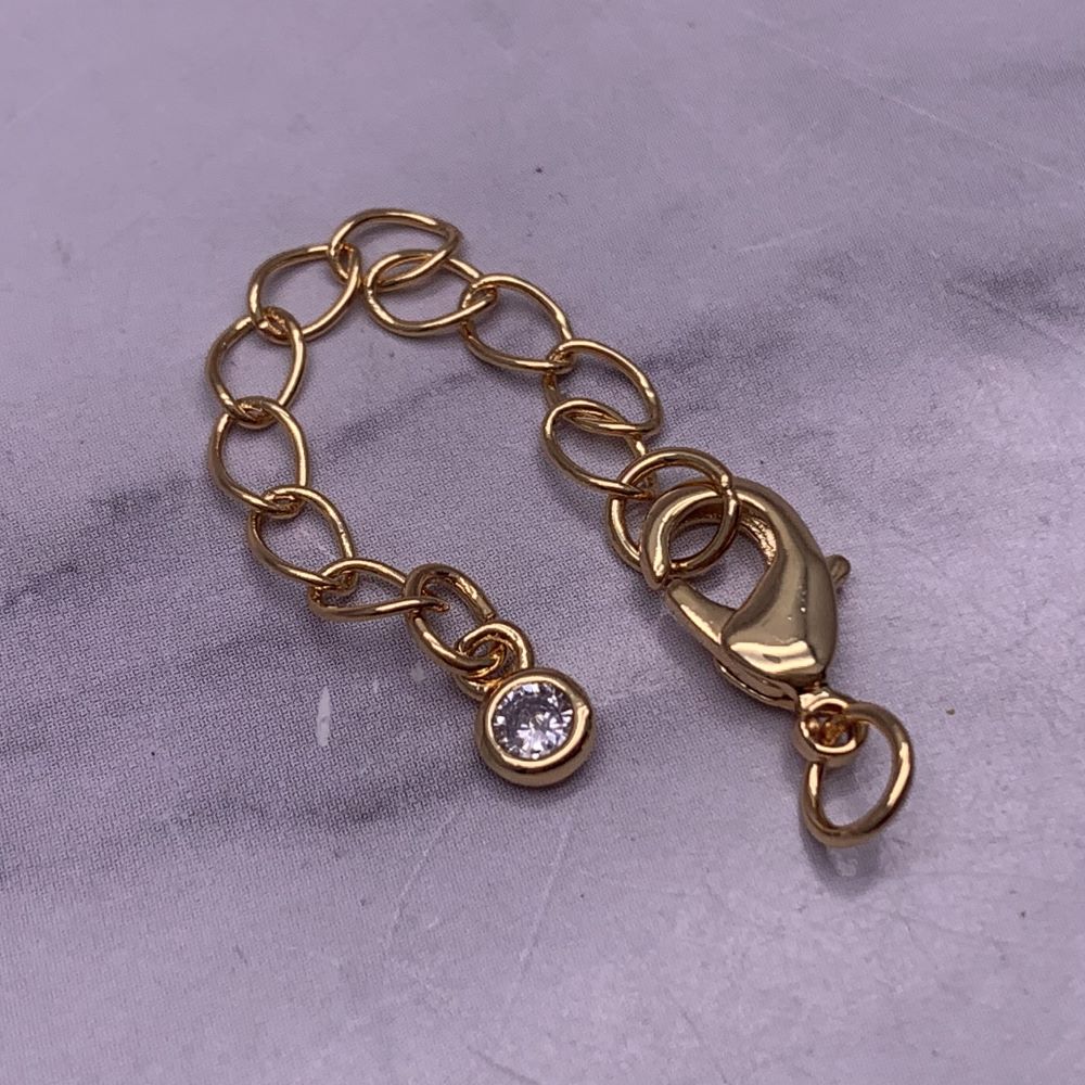 • Карабин, замочек, латунь, под золото, 12 мм, с соединительным колечком, с удлинителем 57 мм, с кристаллом, цена за 1 шт