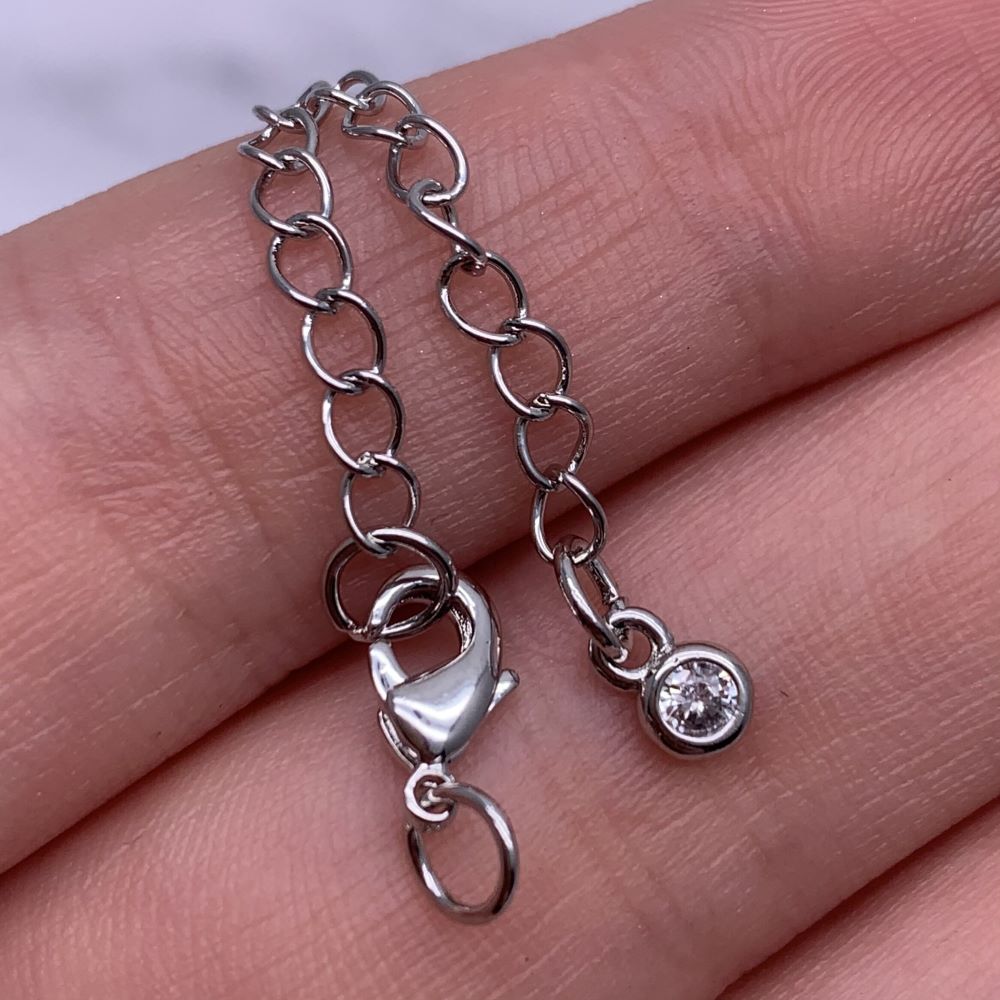 Карабин, замочек, родий/латунь, под серебро, 10 мм, с соединительным колечком, с удлинителем 50 мм, с кристаллом, цена за 1 шт