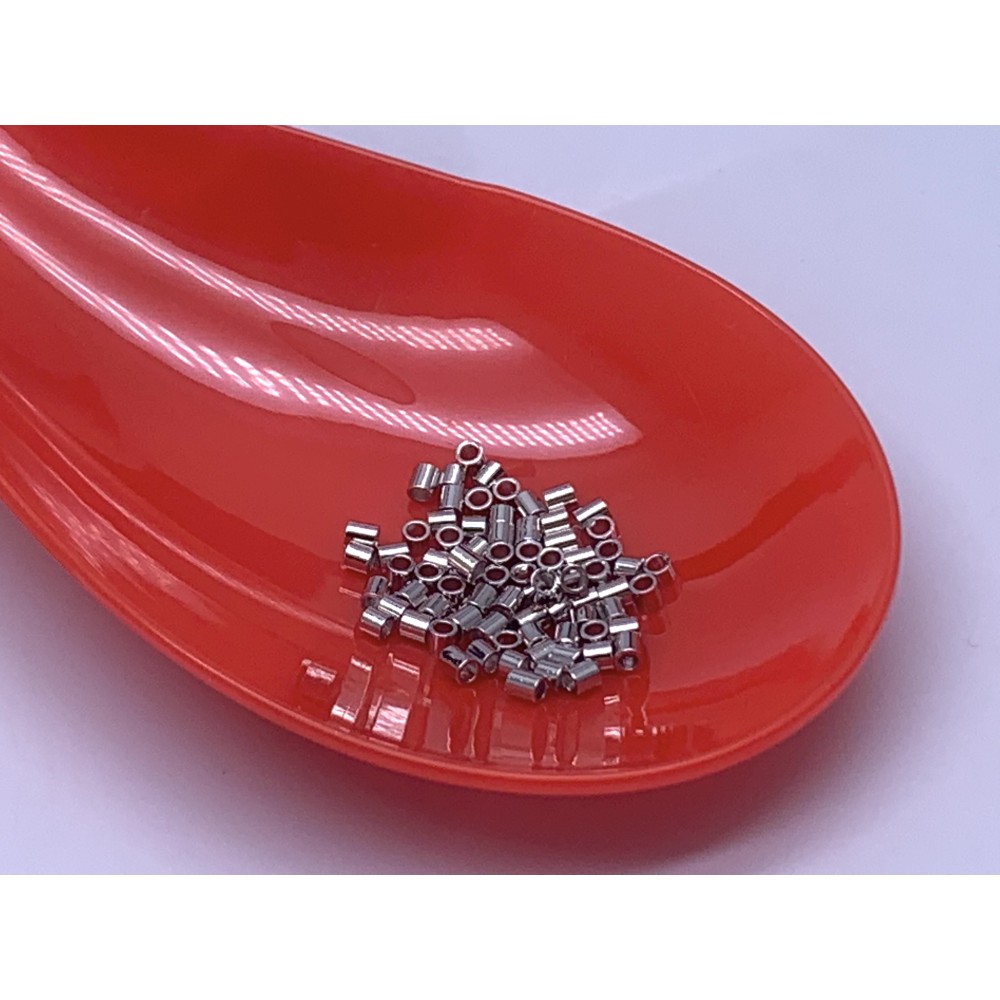 Кримпы, трубочки, латунь, люкс, качество ААА, цвет серебро (родий), 2х2 мм, цена за упаковку (30 шт.)