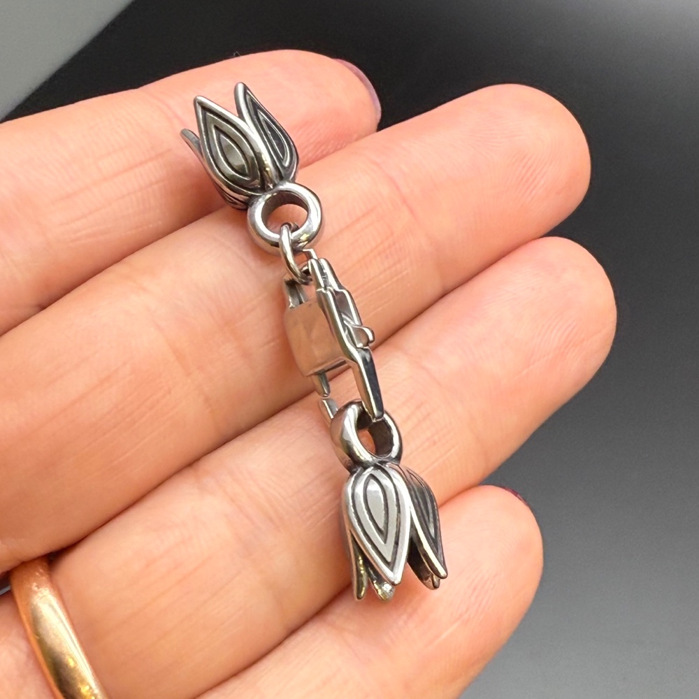 Замочек, карабин, нержавеющая сталь, размер 13 мм, с концевиками тюльпан, общая длина 38 мм