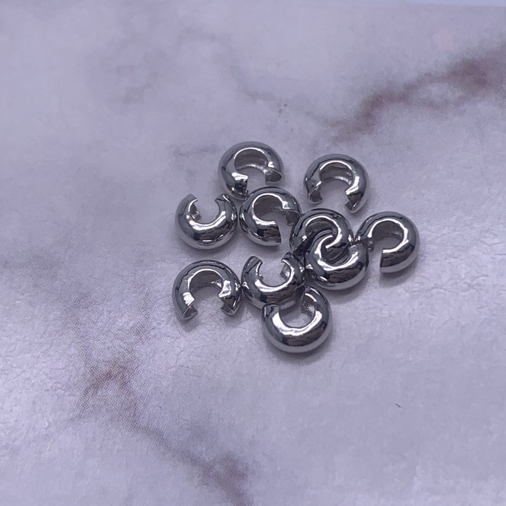 Обжимные(покрывные) бусины для кримпов, люкс, качество ААА, латунь, цвет родий(серебро), 3 мм, цена за упаковку (20 шт)