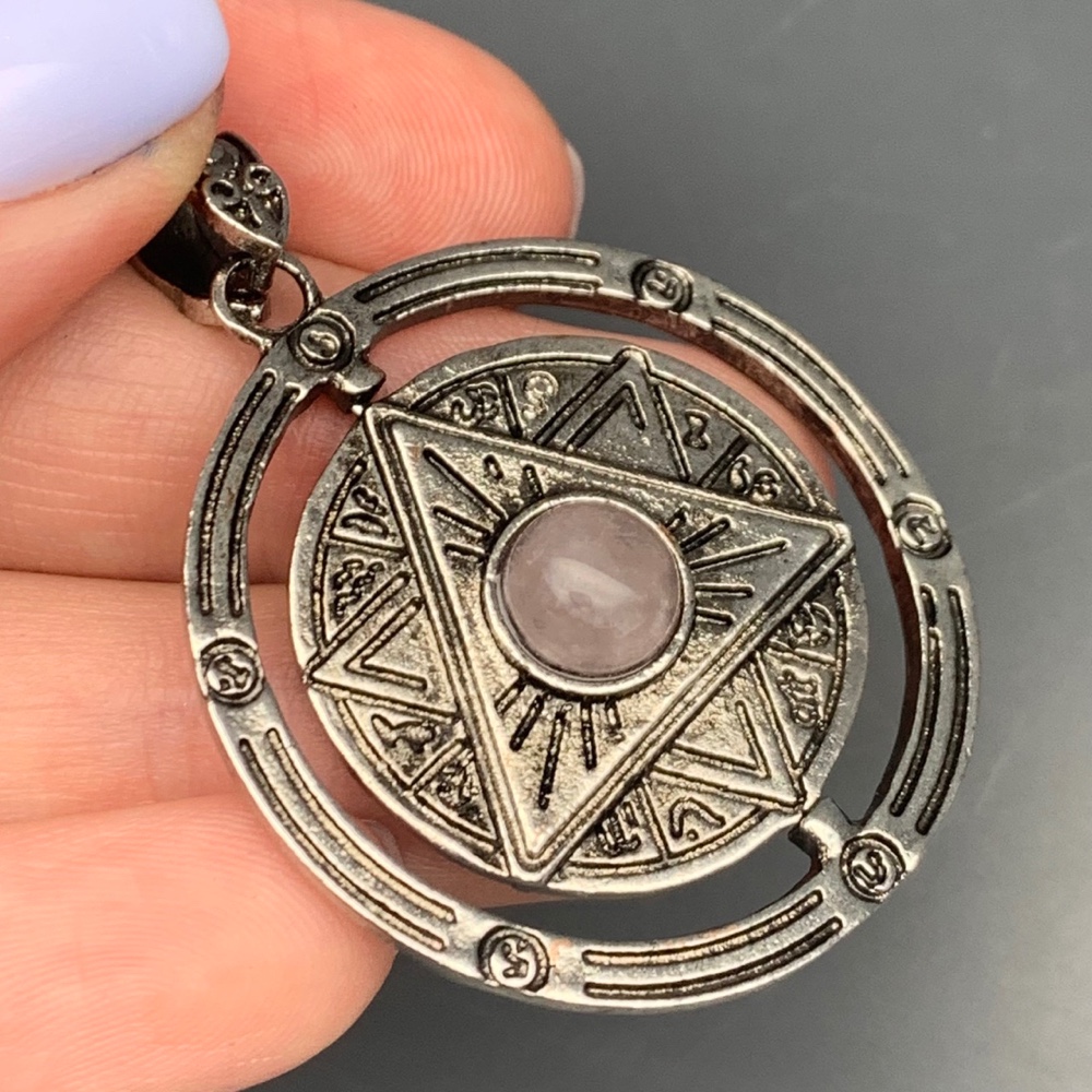 Подвеска, Розовый кварц, гексаграмма в круге, диаметр 37 мм, цена за 1 шт.