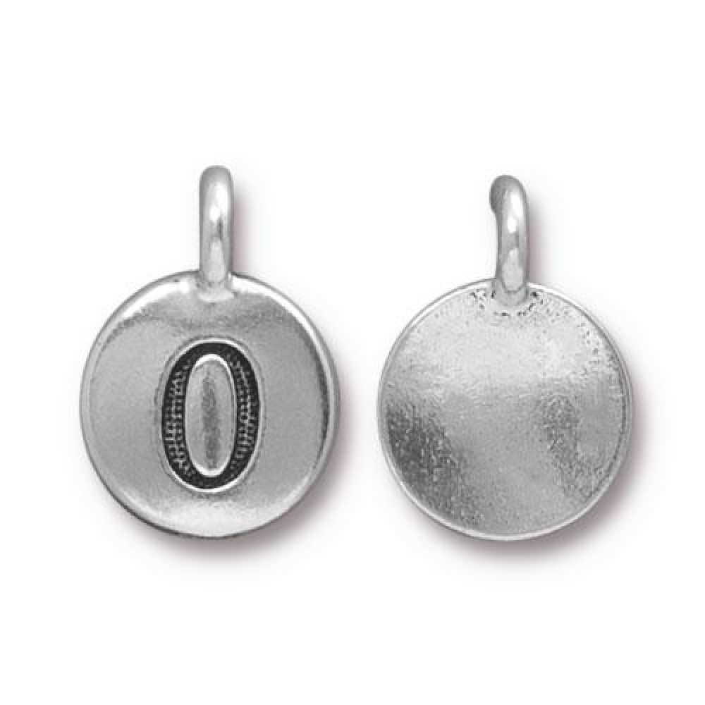 Подвеска шарм TierraCast, цифра 0, посеребренная с чернением, 16х12мм