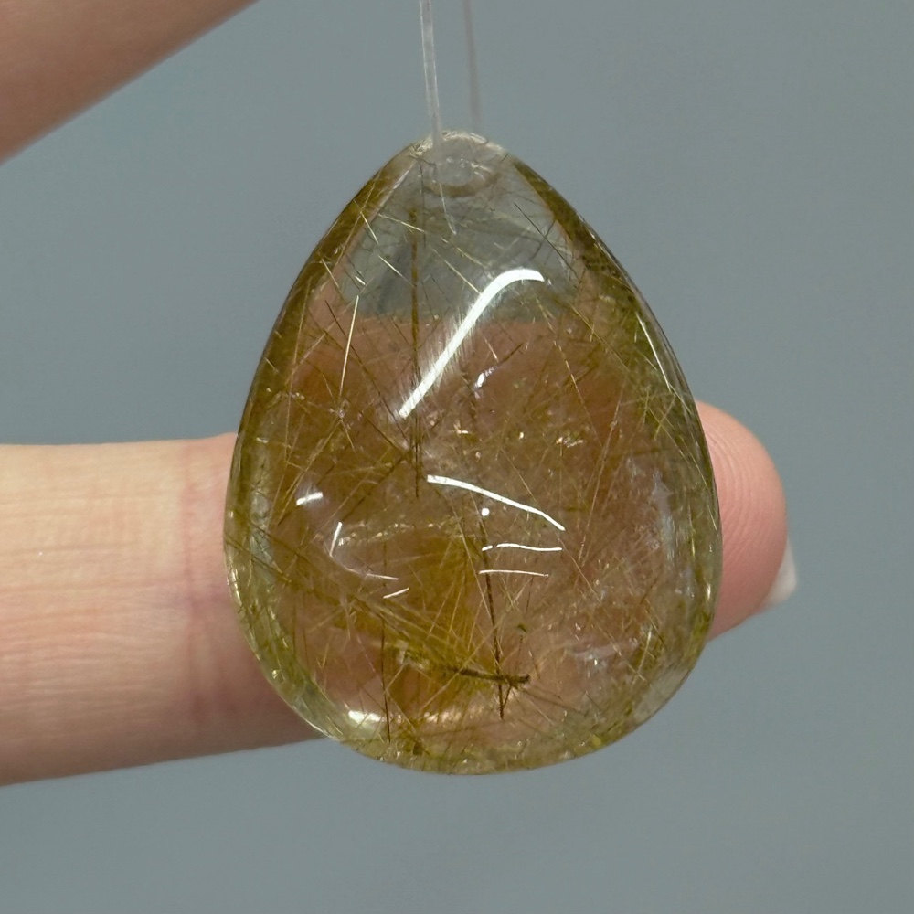 • Подвеска №6, Золотой рутиловый кварц, люкс, капля, размер 28х20 мм, цена за 1 шт.