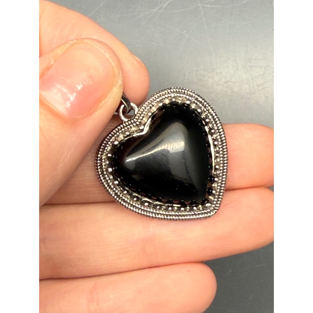 • Подвеска, Агат черный, сердце, в оправе, размер 27х9 мм, цена за 1 шт.