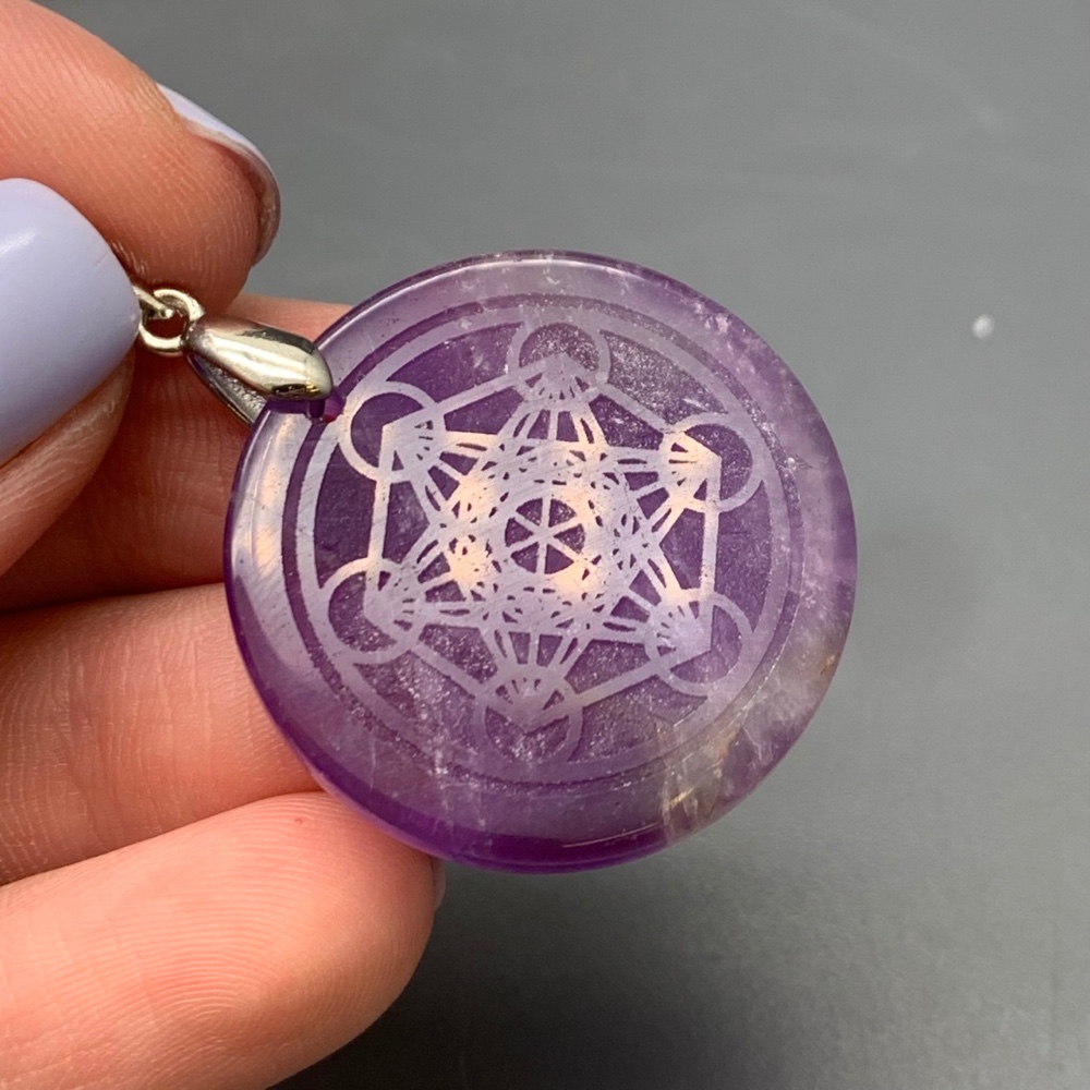 • Подвеска, Аметист, с гравировкой, "Куб Метатрона", размер 30х4,5 мм, цена за 1 шт.