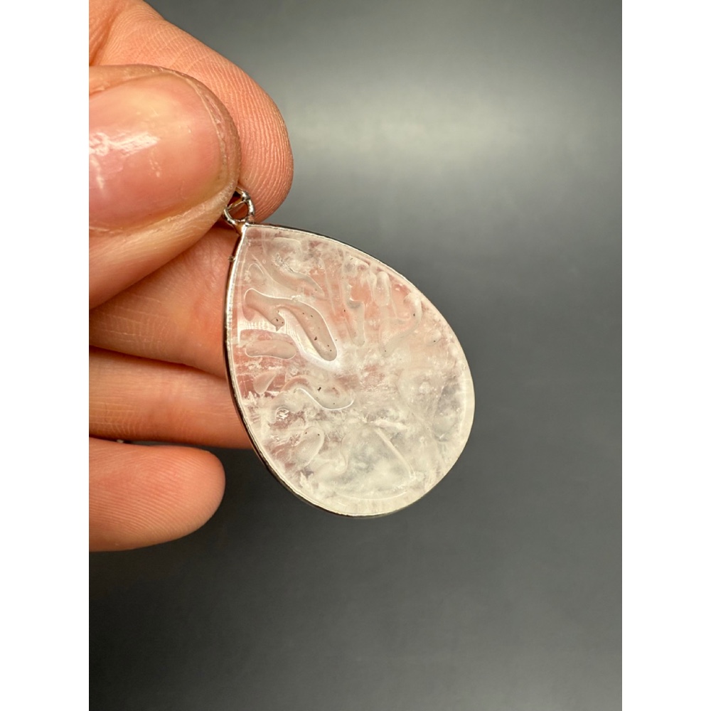 Подвеска, Горный хрусталь, "Дерево жизни", резная, капля, в оправе, размер 33х25х7 мм, цена за 1 шт.