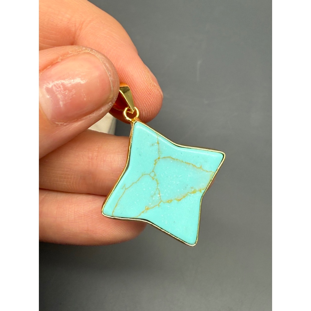 • Подвеска, Говлит натуральный (т.н. Кахолонг), голубой, тонированный, Звезда, ромб, в оправе, размер 29х3 мм, цена за 1 шт.