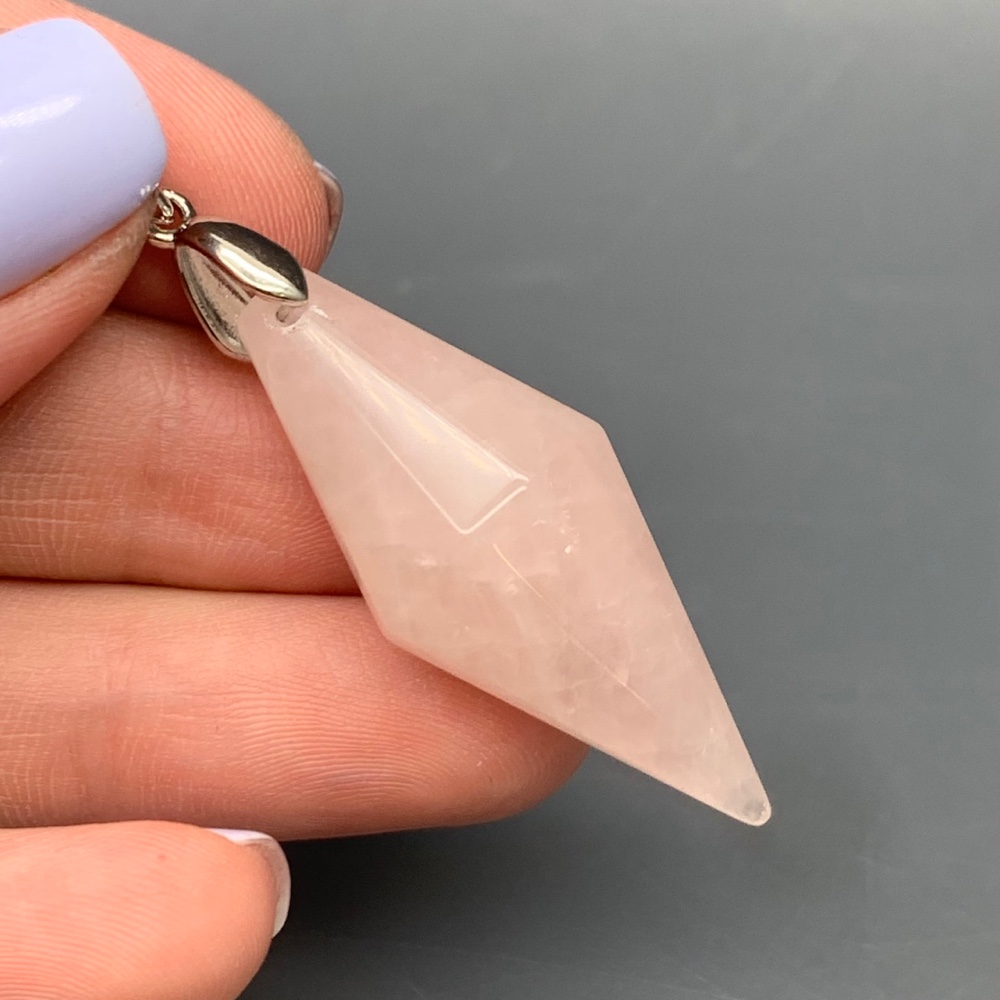 Теги: Подвеска, маятник, Розовый кварц, конус с гранями, размер 40х15 мм, цена за 1 шт., 19954, Кулоны