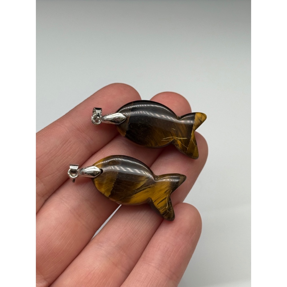 Подвеска, Рыбка, тигровый глаз, цвет оправы-серебро, размер ~30х15 мм, цена за 1 шт. 0 200 ₽