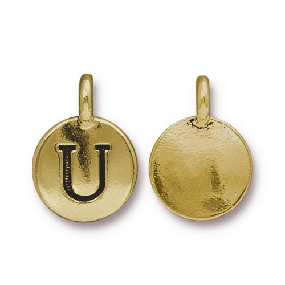 Подвеска шарм TierraCast, буква английского алфавита U, позолоченная с чернением, 16х12мм