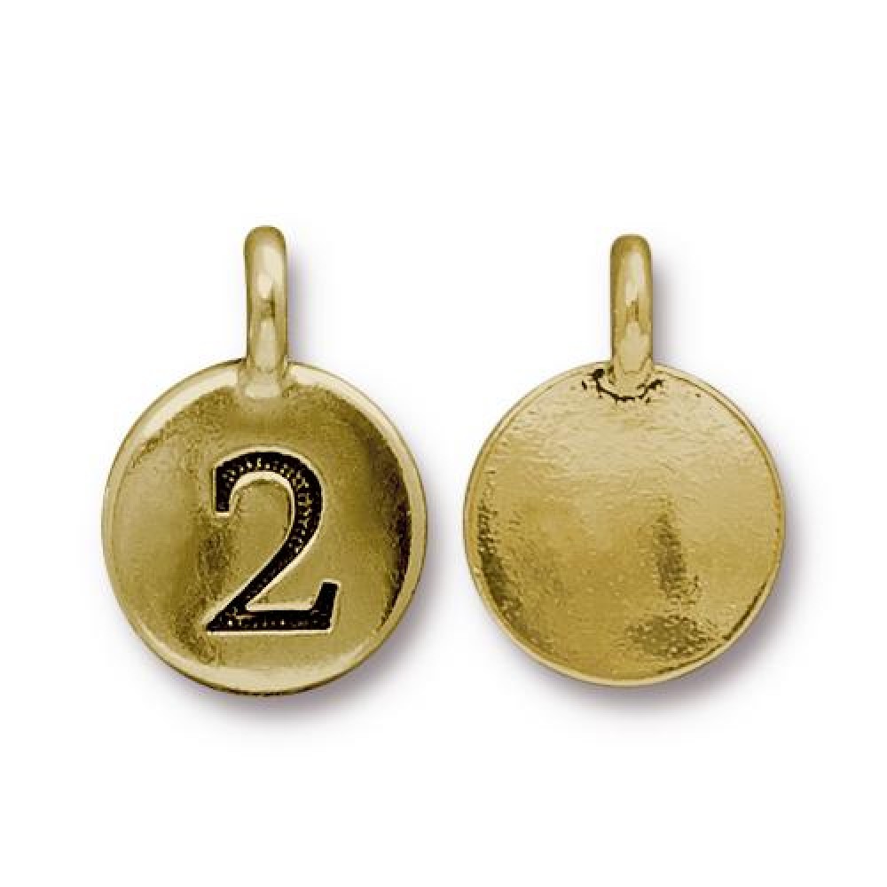 Подвеска шарм TierraCast, цифра 2, позолоченная с чернением, 16х12мм 0 60 ₽