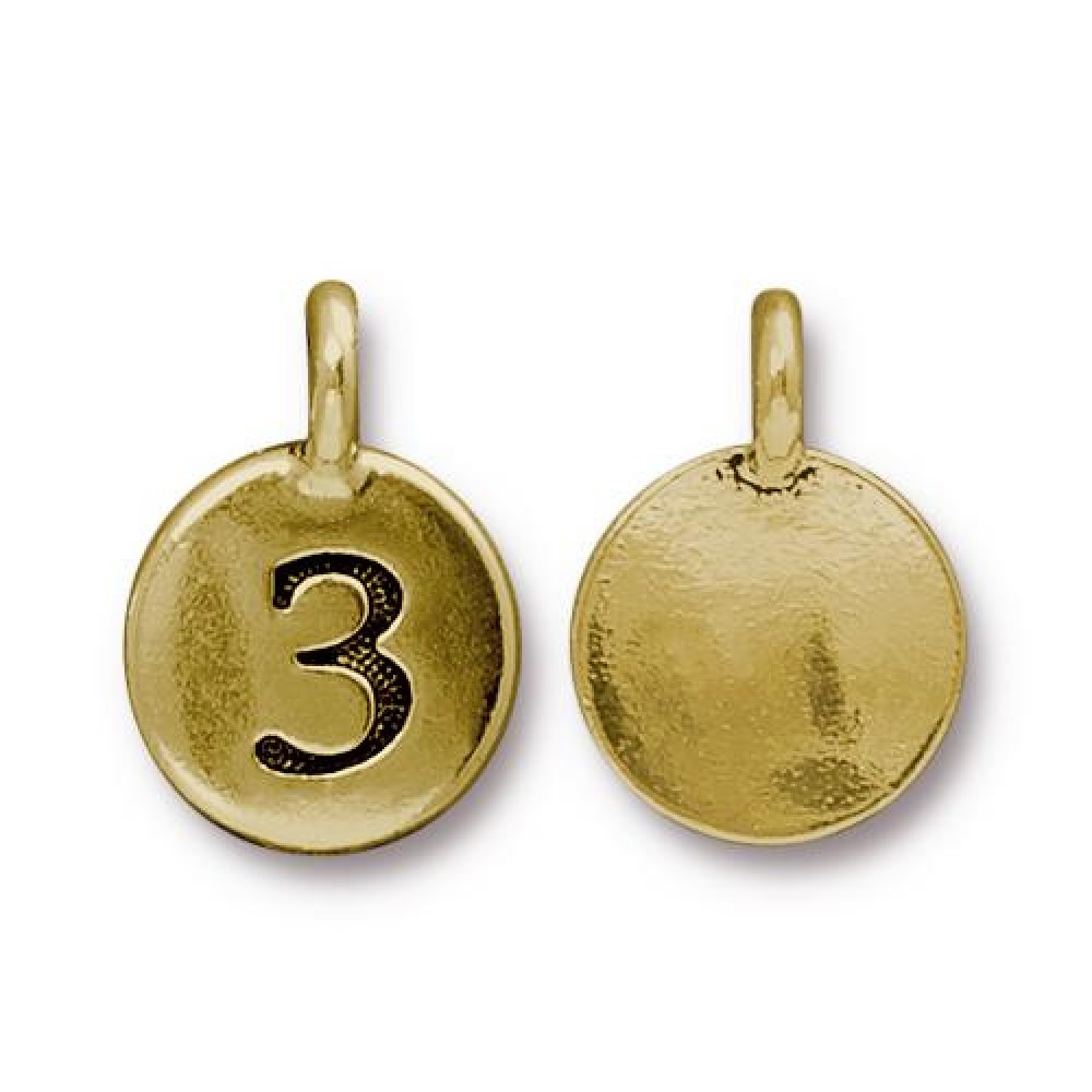Подвеска шарм TierraCast, цифра 3, позолоченная с чернением, 16х12мм