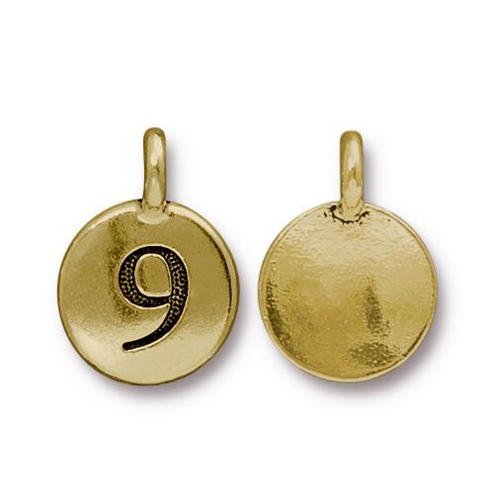 Подвеска шарм TierraCast, цифра 9, позолоченная с чернением, 16х12мм