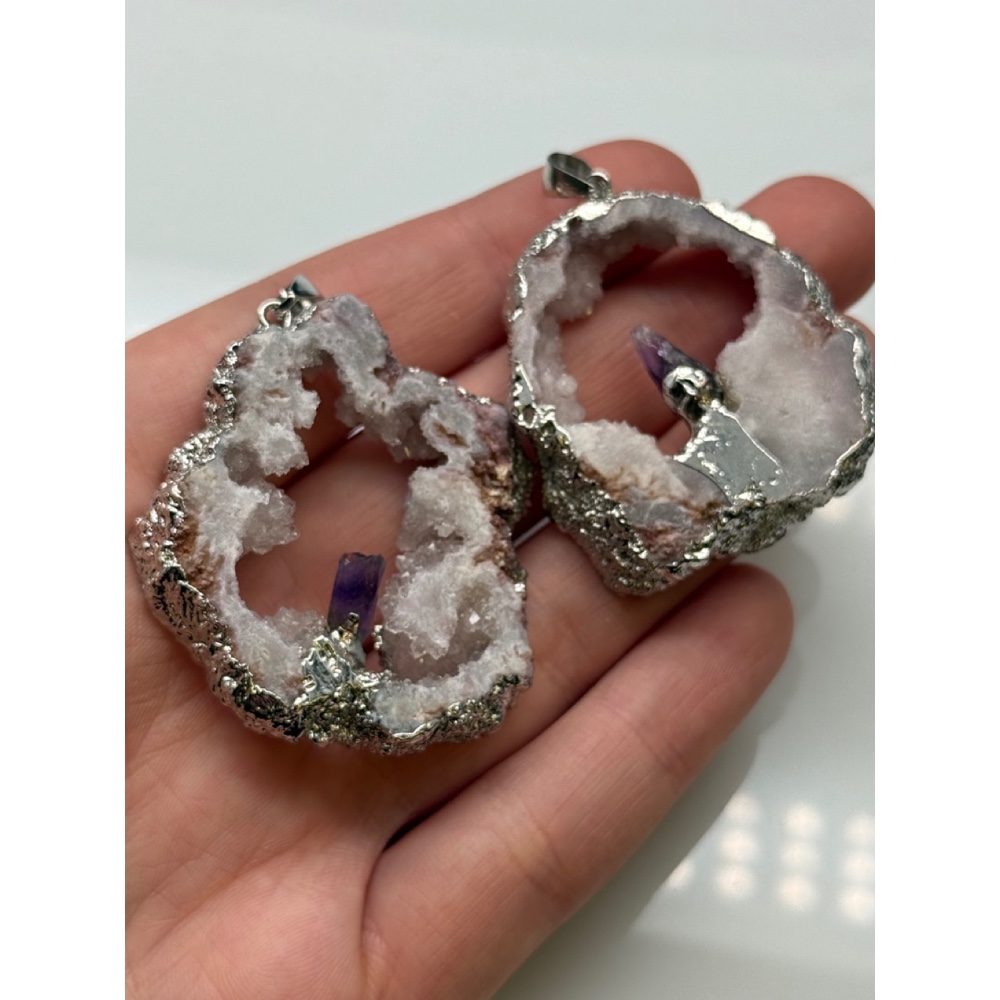 Теги: Подвеска, Срез агата, с кристаллом аметиста, в оправе, цвет- серебро, размер ~40-42 мм, цена за 1 шт., 21509, Подвески, Кулоны
