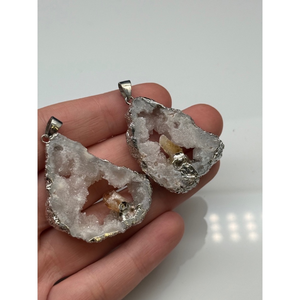Теги: Подвеска, Срез агата, с кристаллом цитрина, в оправе, цвет- серебро, размер ~40-41 мм, цена за 1 шт., 21511, Подвески, Кулоны