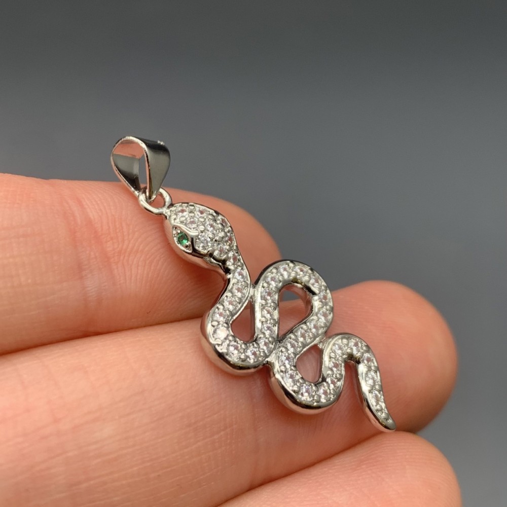 • Подвеска, змея, со стразами(цирконами), латунь, цвет серебро/родий, размер 30х13 мм