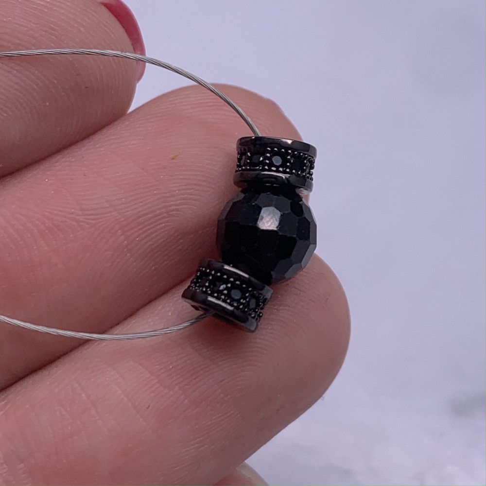 Разделитель с фианитами, латунь, цвет черный, размер 6х3,5 мм