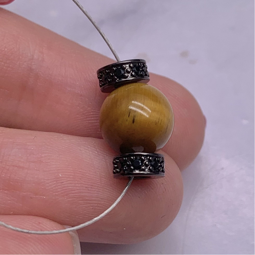 Разделитель с фианитами, латунь, цвет черный, размер 7х3 мм