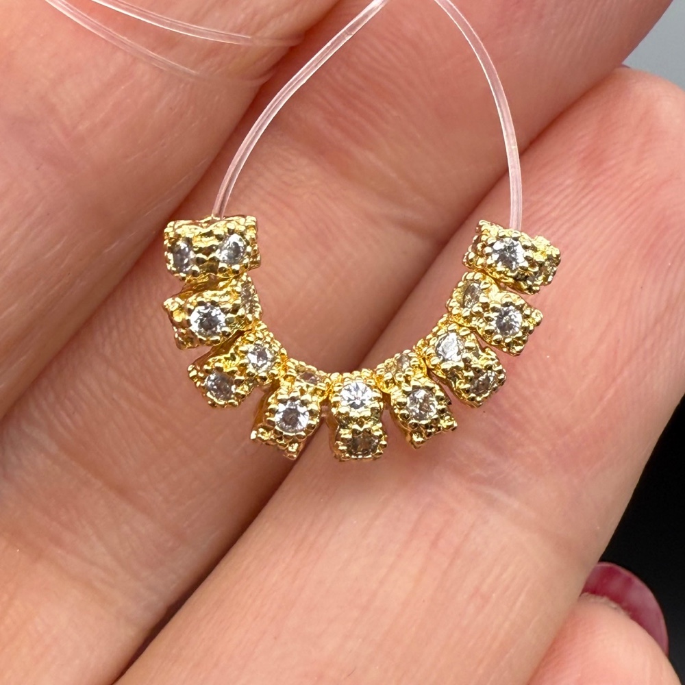 Теги: Разделитель с фианитами, латунь, цвет золото, размер 4х2, 5 мм, цена за 10 шт, 21245, Разделители