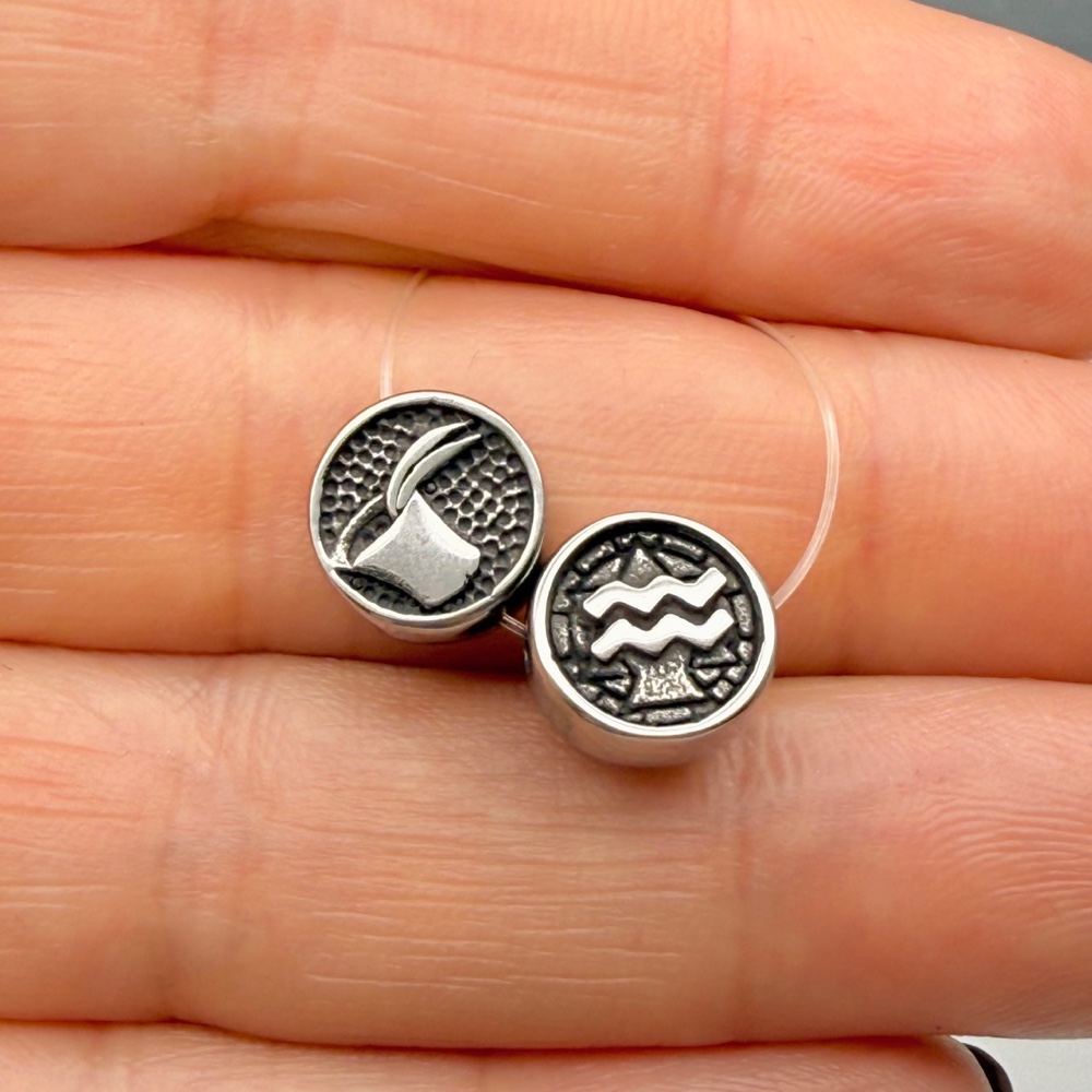 Бусина, разделитель, Знак зодиака, Водолей, нержавеющая сталь, размер 10х4 мм, цена за 1 шт.