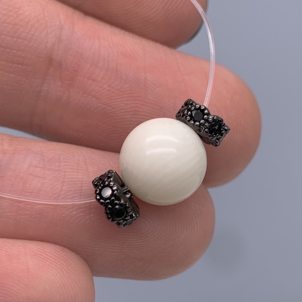 Разделитель с фианитами, латунь, цвет черный, размер 6х2 мм, цена за 10 шт