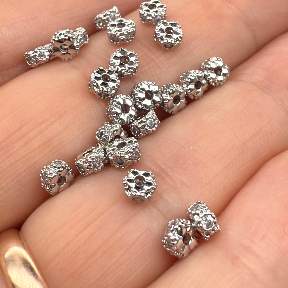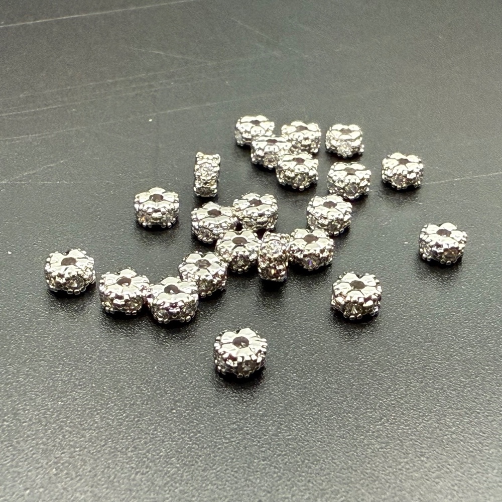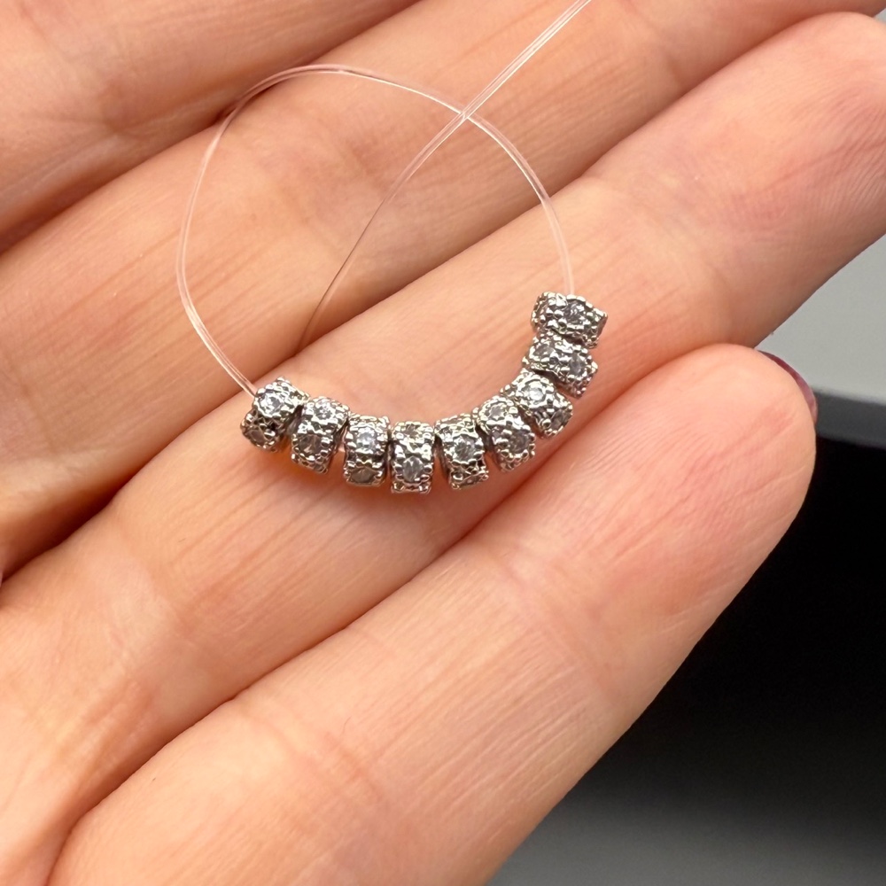 Теги: Разделитель с фианитами, латунь, цвет серебро/родий, размер 4х2, 5 мм, цена за 10 шт, 21244, Разделители