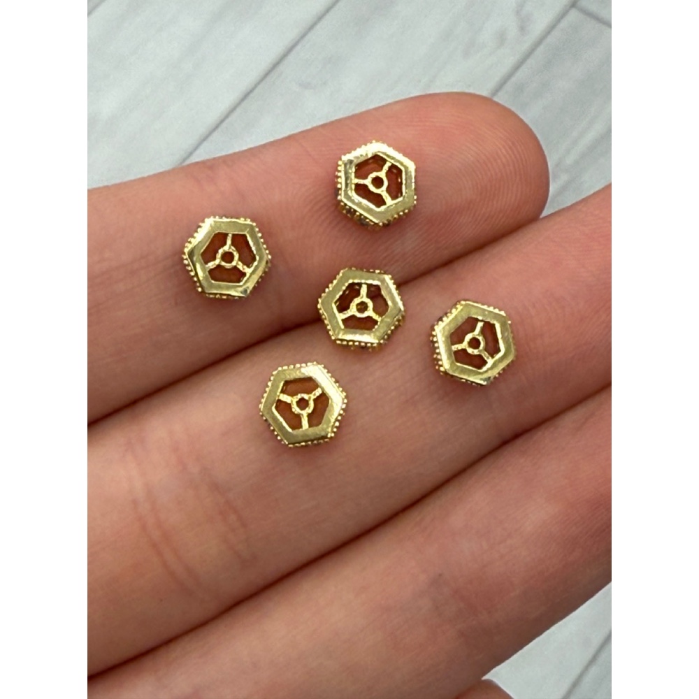 Теги: Разделитель с фианитами, шестиугольник, соты, латунь, цвет золото, размер 6, 5 мм, 20508, Разделители