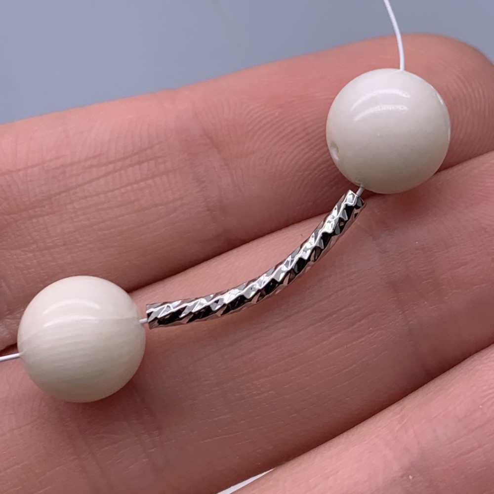 Разделитель, трубочка, рифленная, латунь, цвет серебро/родий, размер 20х2 мм