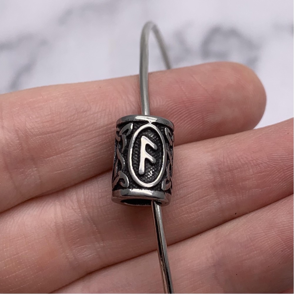 Бусина, Руны АНСУЗ, (Руна знаний, поэзии и общения), нержавеющая сталь, с чернением, размер 14х10 мм, цена за шт