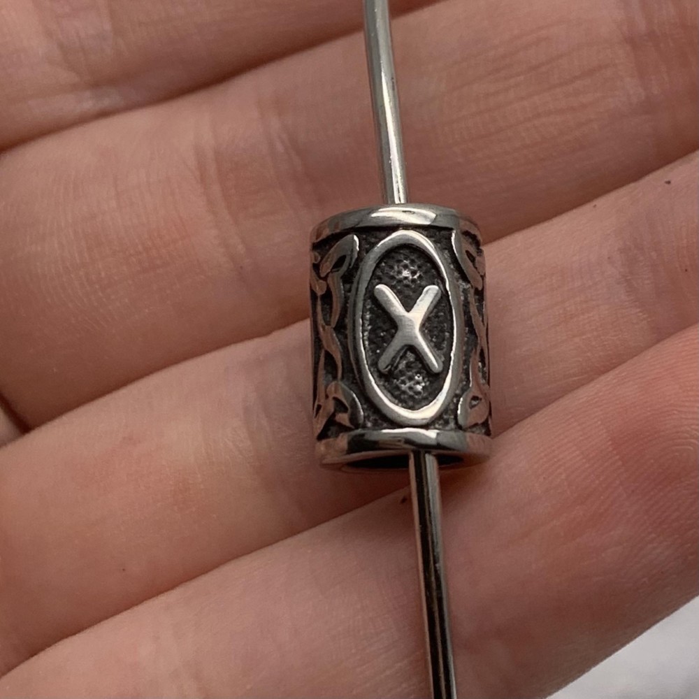 Бусина, Руны ГЕБО, (Руна любви и дружбы, творчества и партнерства), нержавеющая сталь, с чернением, размер 14х10 мм, цена за шт 0 120 ₽