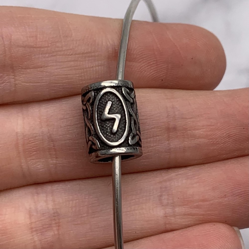 Бусина, Руны СОУЛУ, (Руна Солнца, воплощение силы), нержавеющая сталь, с чернением, размер 14х10 мм, цена за шт