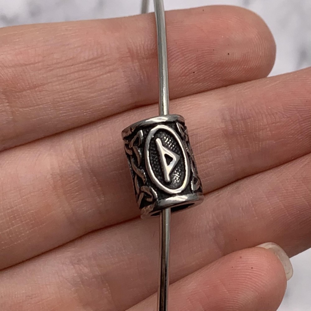 Бусина, Руны ТУРИСАЗ, (Руна пассивности) , нержавеющая сталь, с чернением, размер 14х10 мм, цена за шт