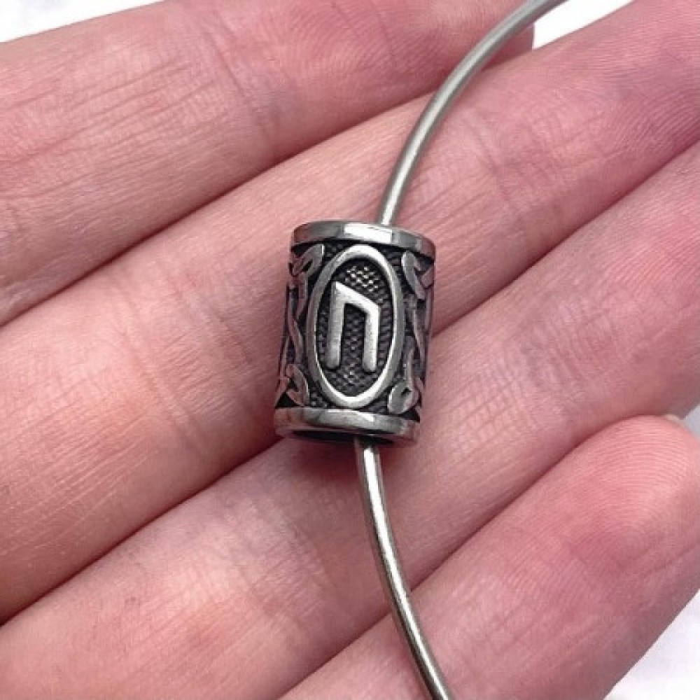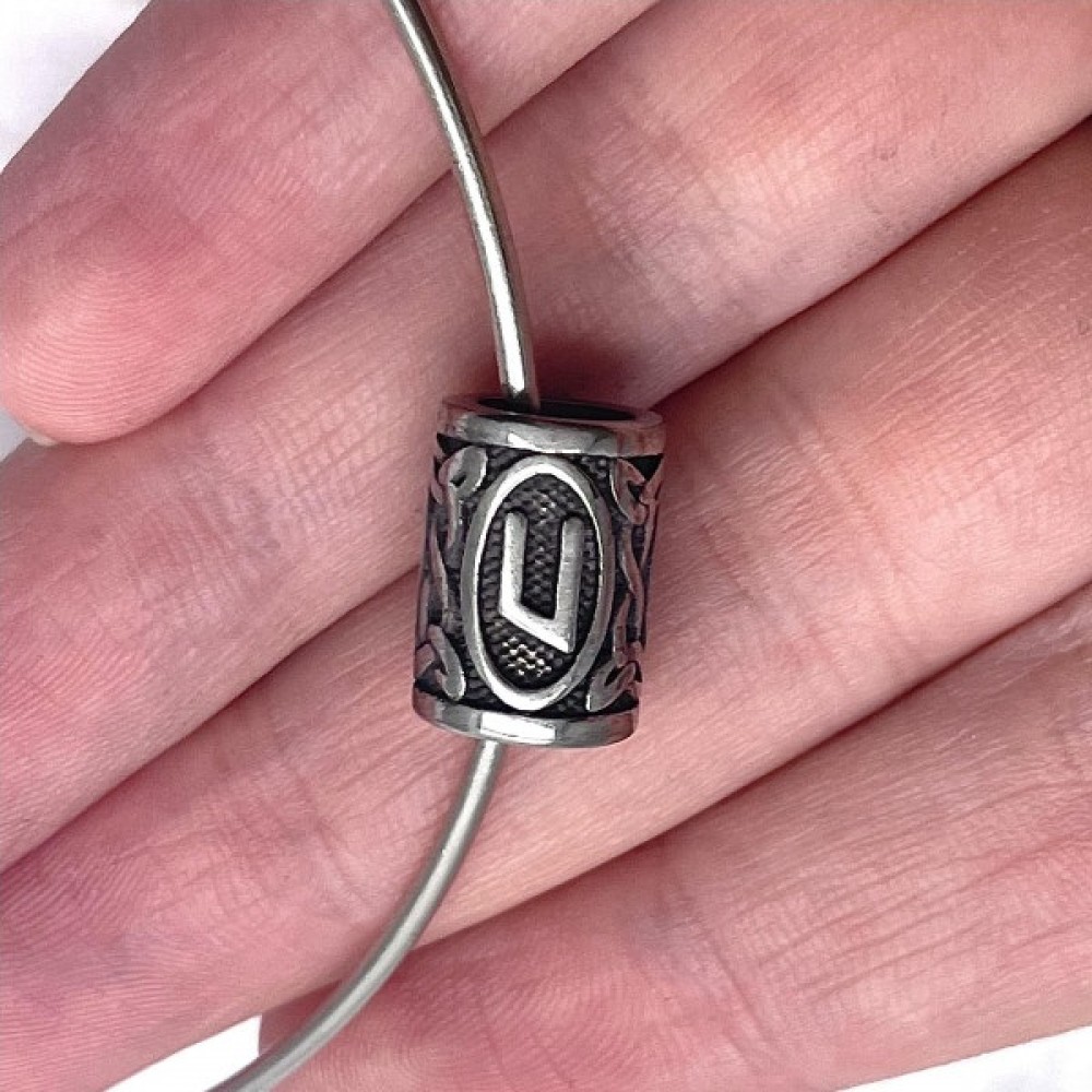 Бусина, Руны УРУЗ, (Руна силы) , нержавеющая сталь, с чернением, размер 14х10 мм, цена за шт