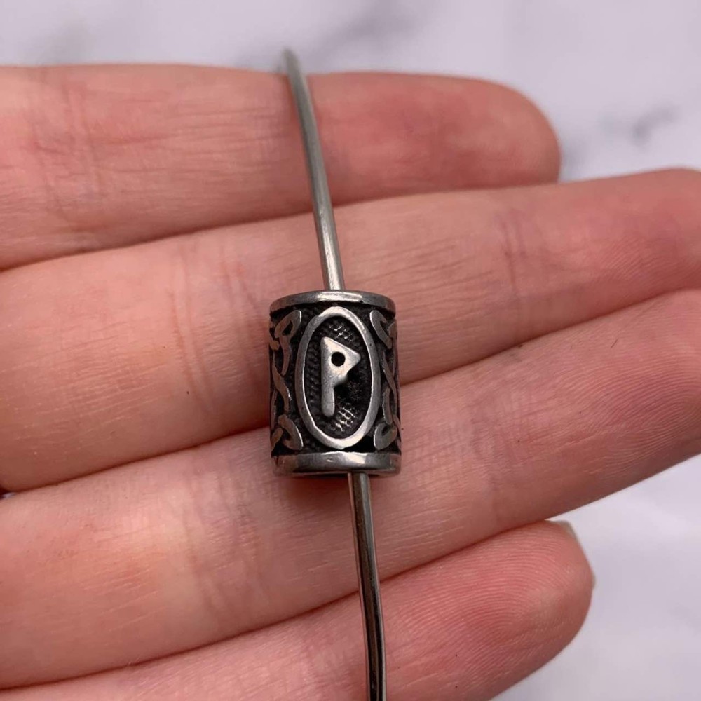 Бусина, Руны ВУНЬО (Руна радости, процветания) , нержавеющая сталь, с чернением, размер 14х10 мм, цена за шт 0 120 ₽