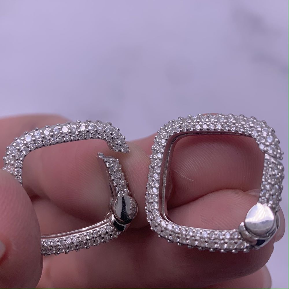 Замок "Квадрат", бейл, со стразами, модель SS 925, покрытие родий, размер 21,5 мм, цена за 1 шт.