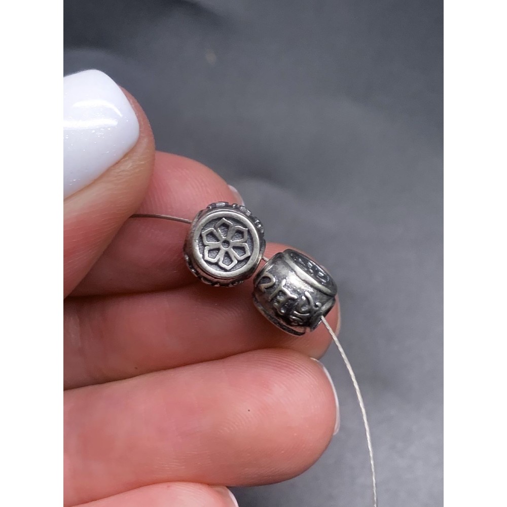 Бусина, плоская с мантрами, широкое отверстие, размер 6х8 мм, цена за 1 шт.
