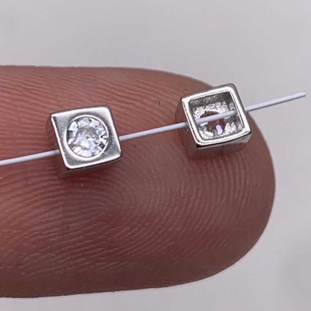 • Бусина, разделитель, вставка цирконий, модель 925, покрытие родий, размер 4 мм, цена за 1 шт.