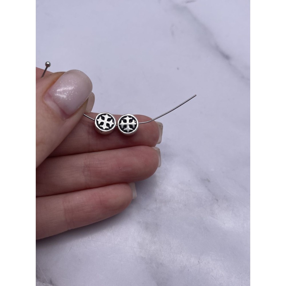 Бусина, "Крест", тайское серебро, размер 7,5х3,5 мм, цена за 1 шт.